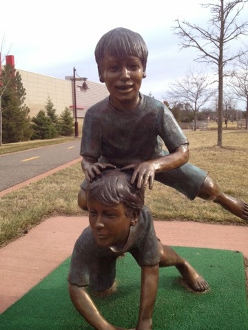 Now I want to go on a road trip today! (But the weather is dreadful!) I really like the sculpture of the two boys playing.